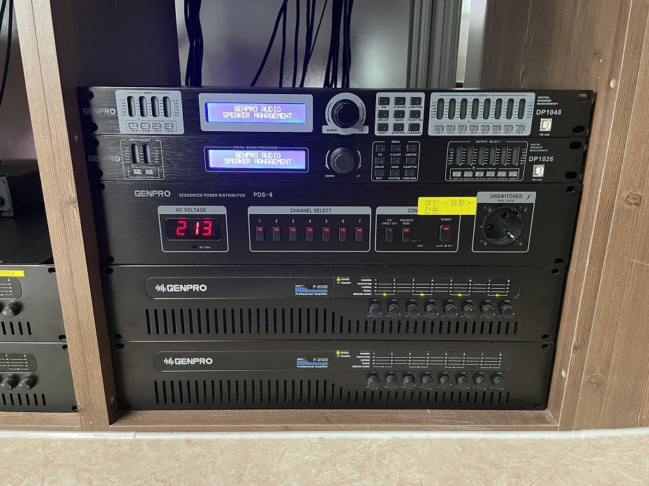 조정실 하단에는 젠프로 기존의 DSP제품과 전원분배기가 있고,